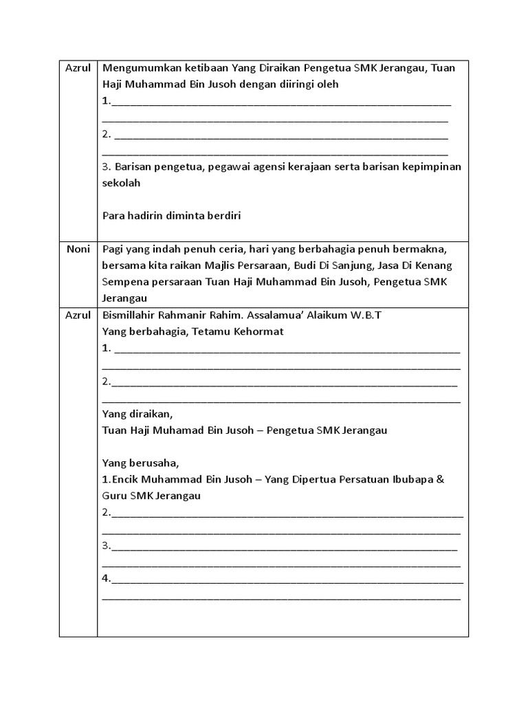 Skrip Mc Majlis Jasamu Dikenang