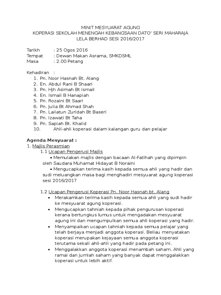 Mesyuarat Agung Koperasi Pages 1 2 Text Version Anyflip