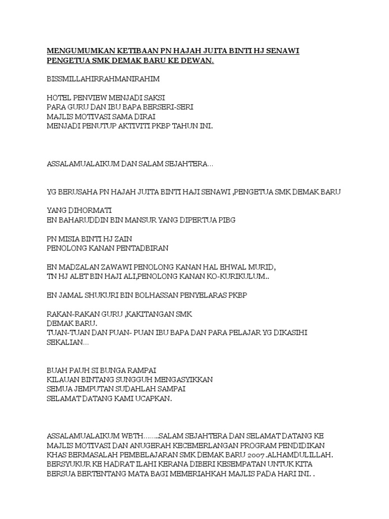 Teks Pengacara Majlis Motivasi Pemimpin Kecil Documents