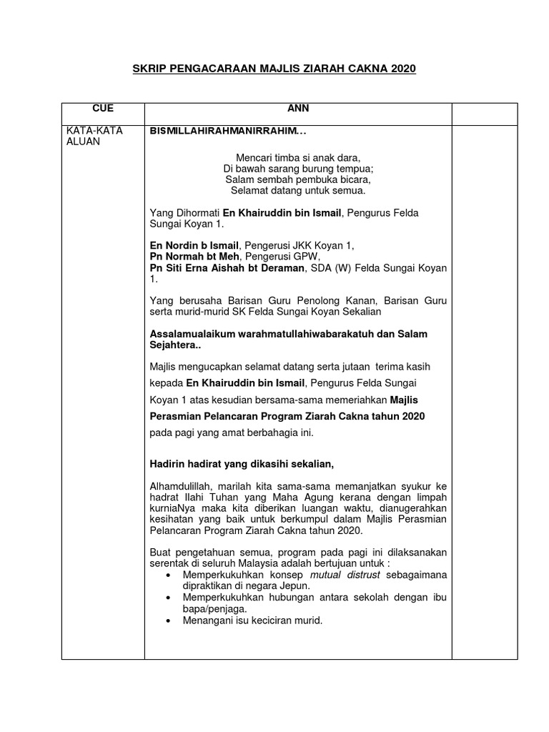 Skrip Pengacaraan Majlis Ziarah Cakna 2020