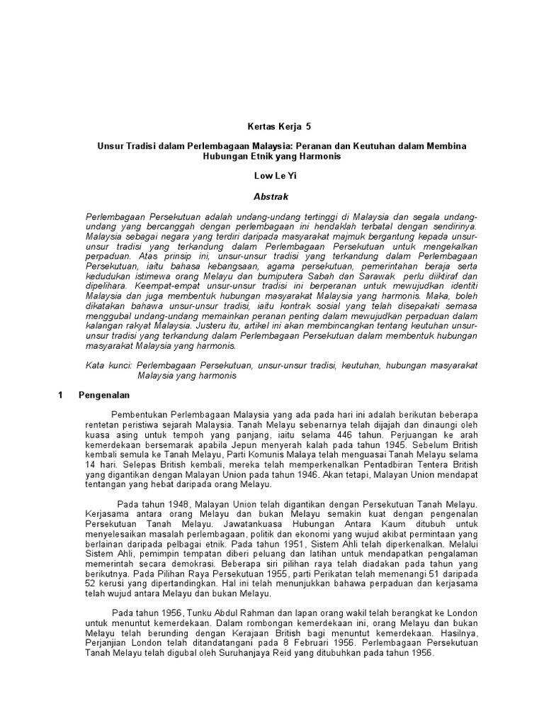 Doc Perlembagaan Dalam Konteks Hubungan Etnik Di Malaysia Kamal Yusof Academia Edu