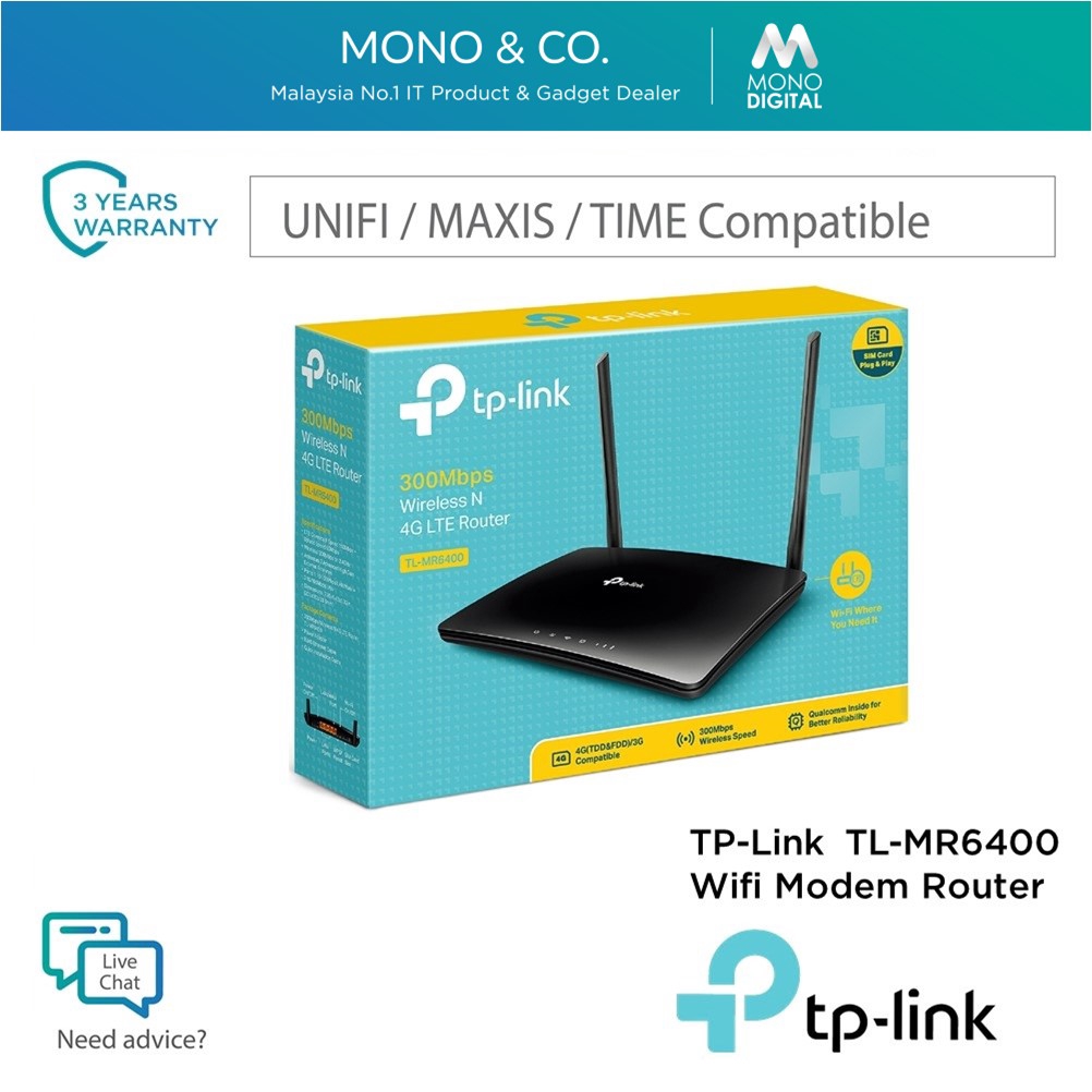Tp Link Tl Mr6400 Mr6400 300mbps Wireless N 4g Lte Router Support Digi Maxis Celcom Yes Umobile Unifi 3 Years Warranty Shopee Malaysia