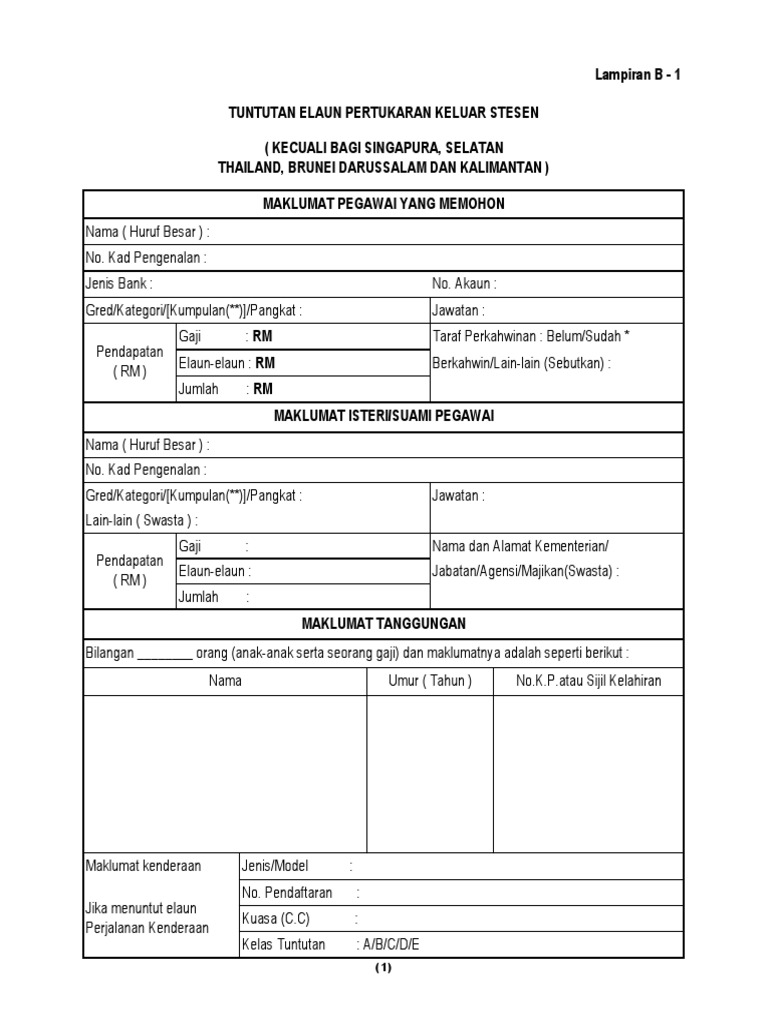 Borang Tuntutan Elaun Pertukaran Ke Luar Stesen Xls Document
