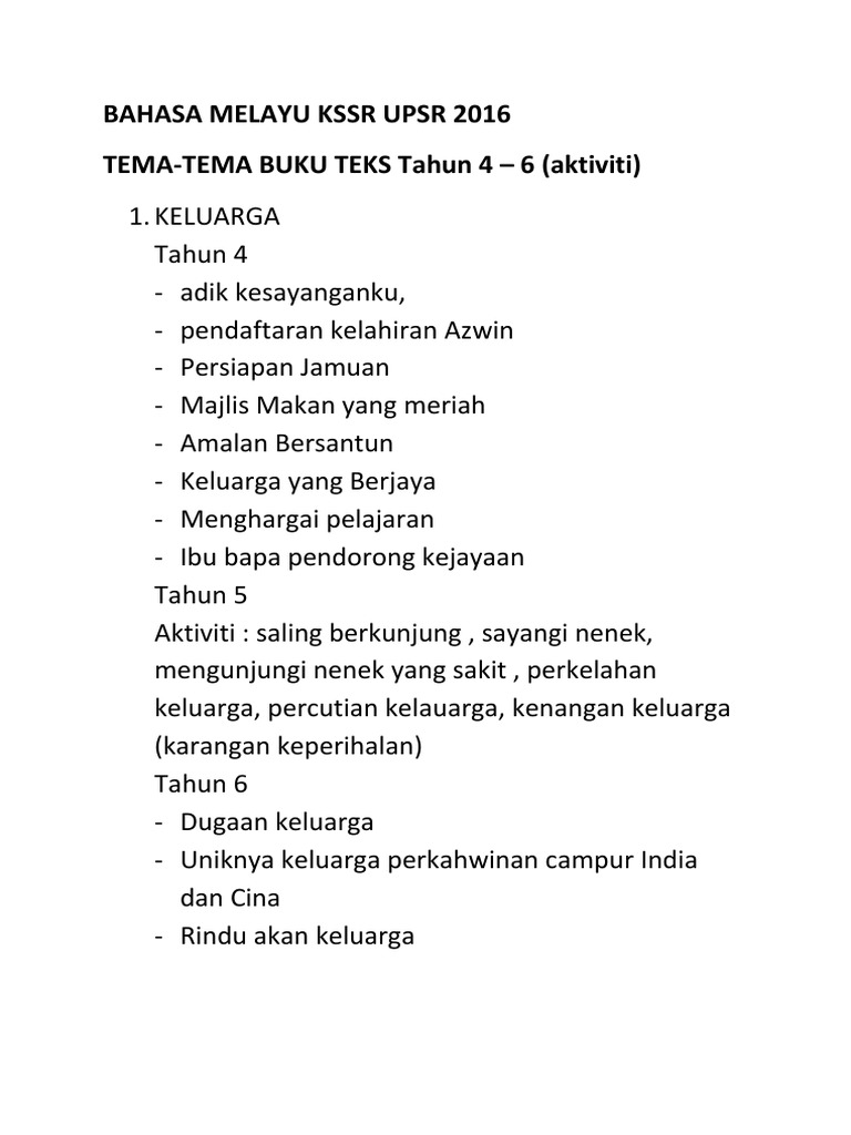 Bahasa Melayu Kssr Upsr 2016 Tema Tema Buku Teks Tahun 4 6 Aktiviti